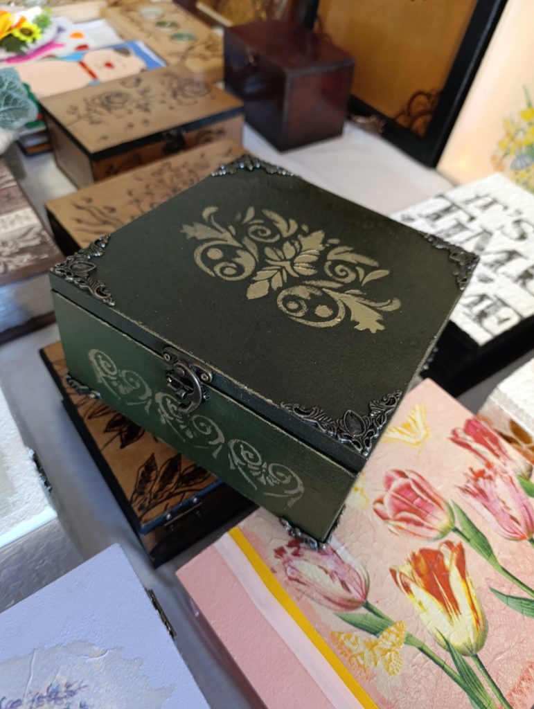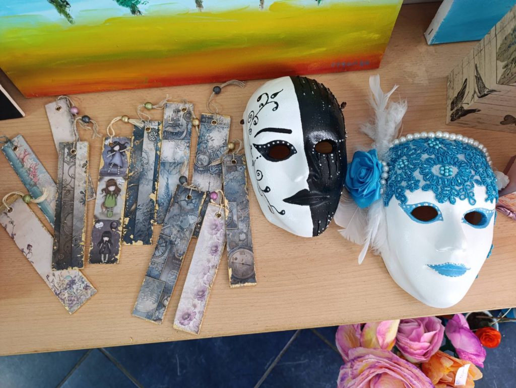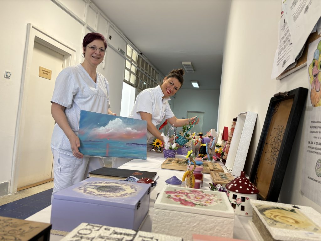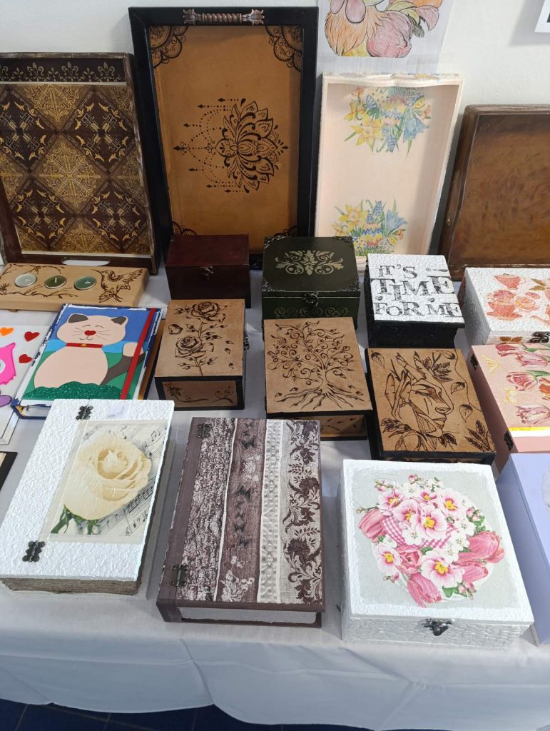 Пацијенти су и ове године израдили најразличитије употребне и декоративне предмете – кутије за накит, свећњаке, огледала, послужавнике, подметаче за чаше декорисане комбинацијом осликавања и декупаж техником, резбарењем или техником пирографије.