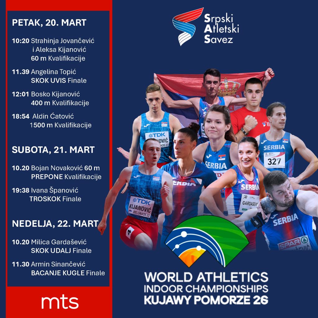 – Ово је моје четврто првенство света у дворани. За сада најбољи пласман на овом такмичењу ми је шесто место у Глазгову 2024. Резултат на нивоу најбољег у сезони би ми обезбедио пласман међу осам најбољих, док би резултат на нивоу мог личног рекорда увео и у борбу за медаље. Скочила сам четири пута преко границе од 6,60 м ове сезоне, надам се добром наступу и још даљим скоковима – рекла је Гардашевић, а преноси Српски атлетски савез.